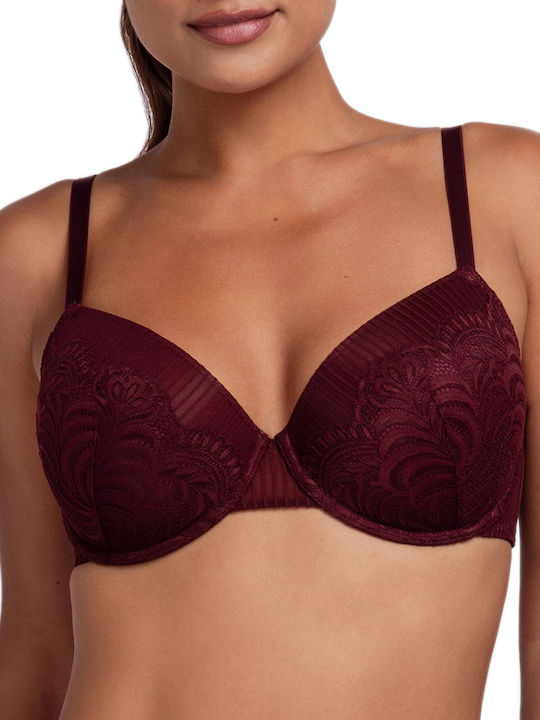 Σουτιέν με διακόσμηση floral δαντέλας και ριγέ διαφάνειας. Το σουτιέν είναι χωρίς ραφές για να μην διαγράφει, προσφέροντας σταθερό κράτημα και διαμόρφωση ομορφότερου μπούστου.
