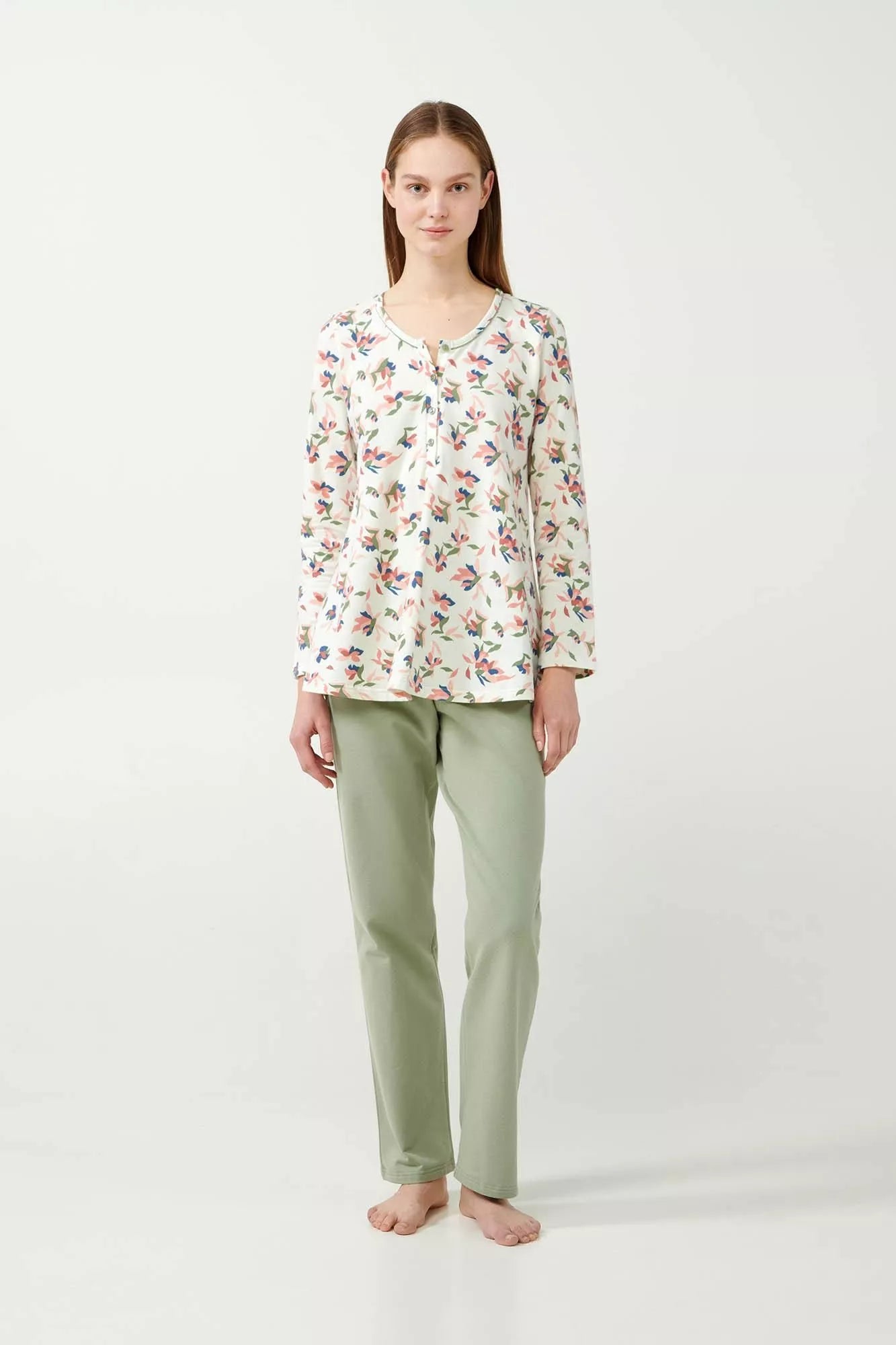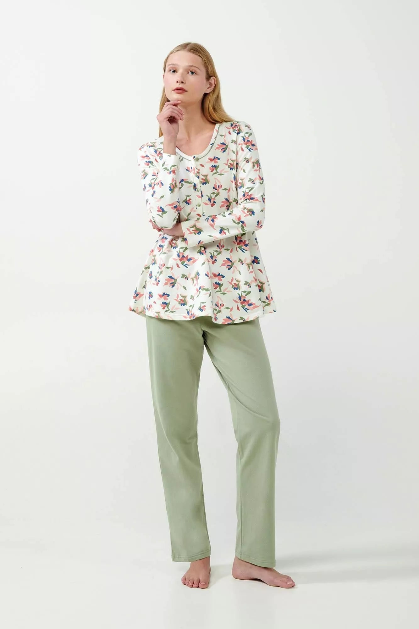 21350 640 VAMP ΓΥΝ. ΠΥΤΖΑΜΑ 100% ΒΑΜΒΑΚΙ χρώμα: GREEN TEA Φούτερ Πυτζάμα Εγκυμοσύνης και Θηλασμού