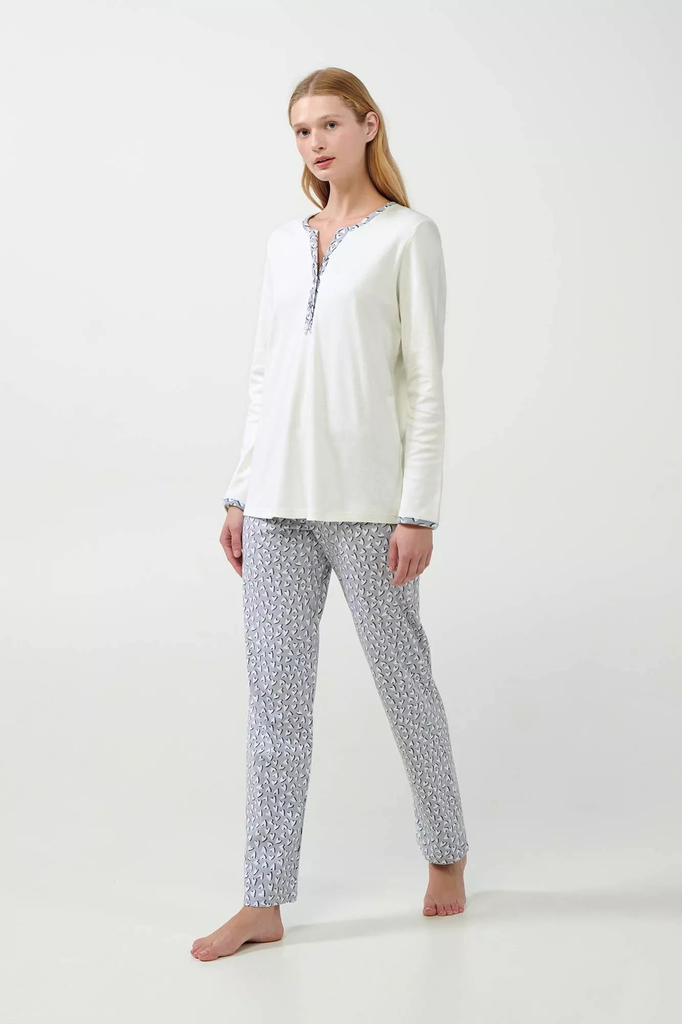 21450 115 VAMP ΓΥΝ. ΠΥΤΖΑΜΑ 100% BAMBAKI χρώμα: CREAM Interlock Πυτζάμα Εγκυμοσύνης και Θηλασμού