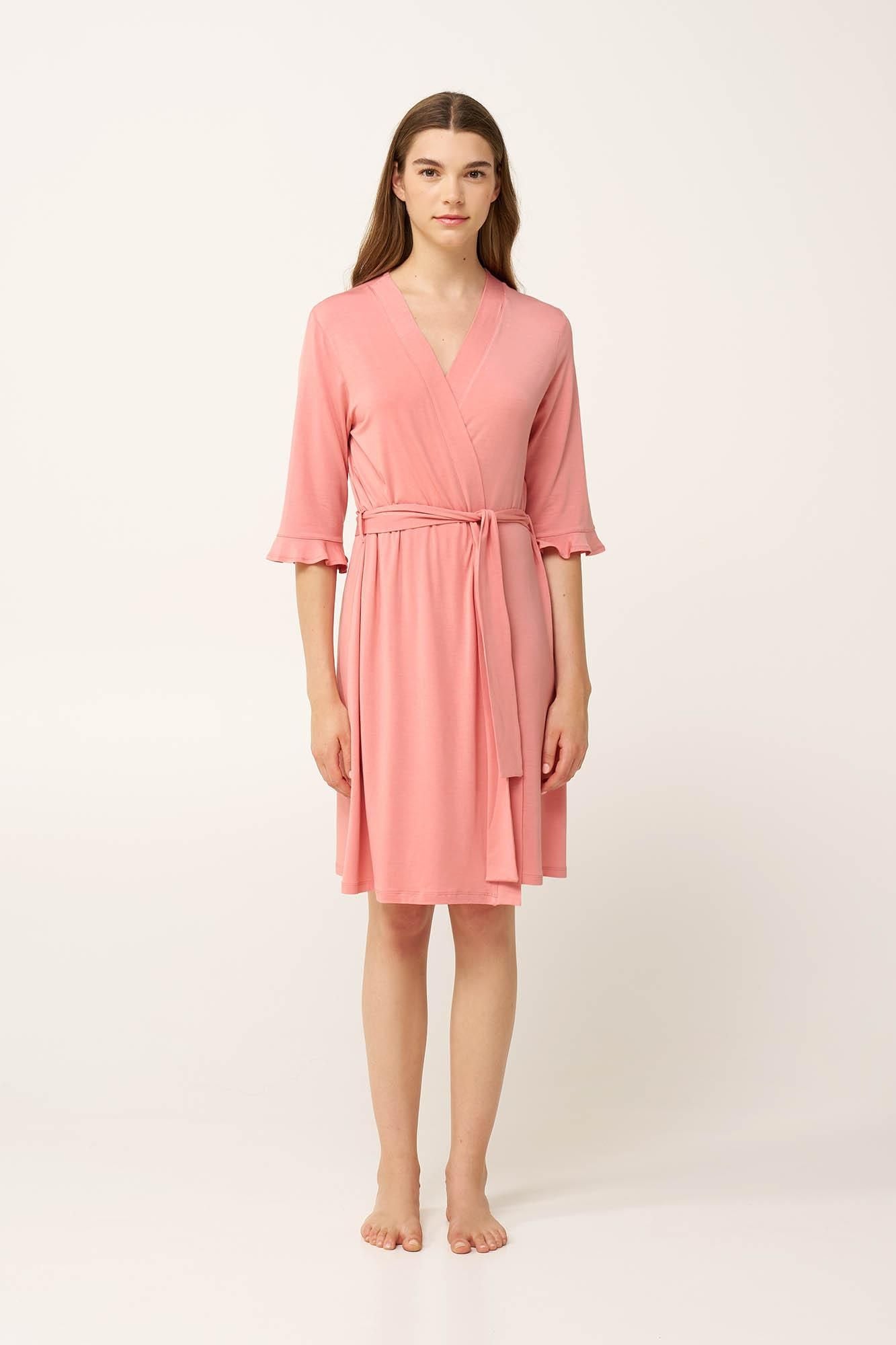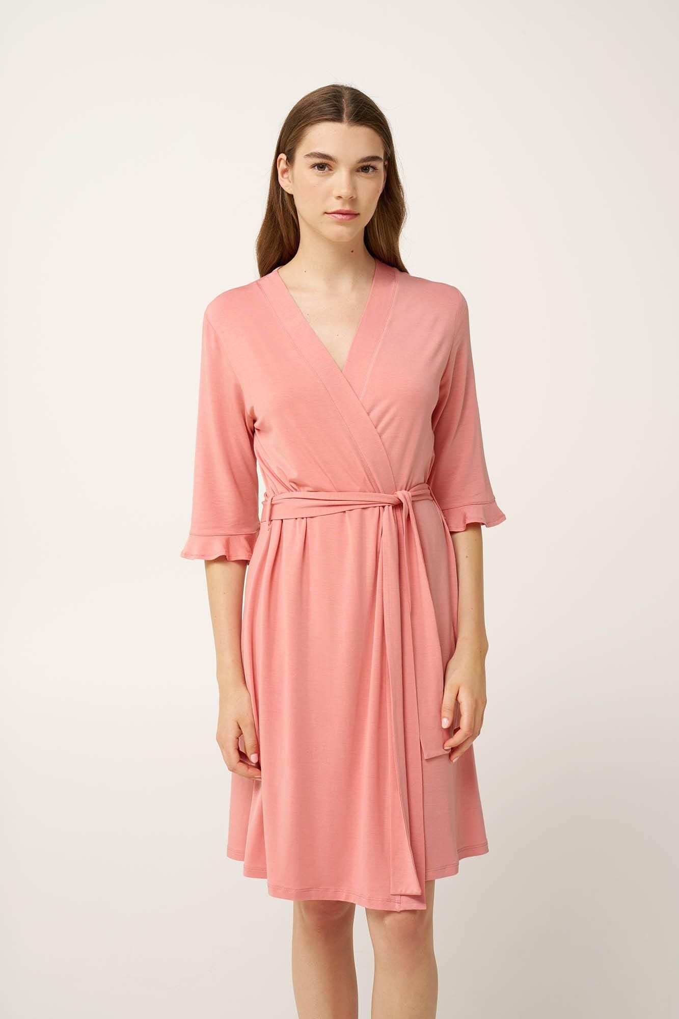 Γυναικείο μπουρνούζι από μικρομοντάλ. LENZING Tencel Modal Micro 93% + Ελαστάν 7% Μήκος: 95 cm Το μοντέλο φοράει: Υψος μοντέλου: 175 cm