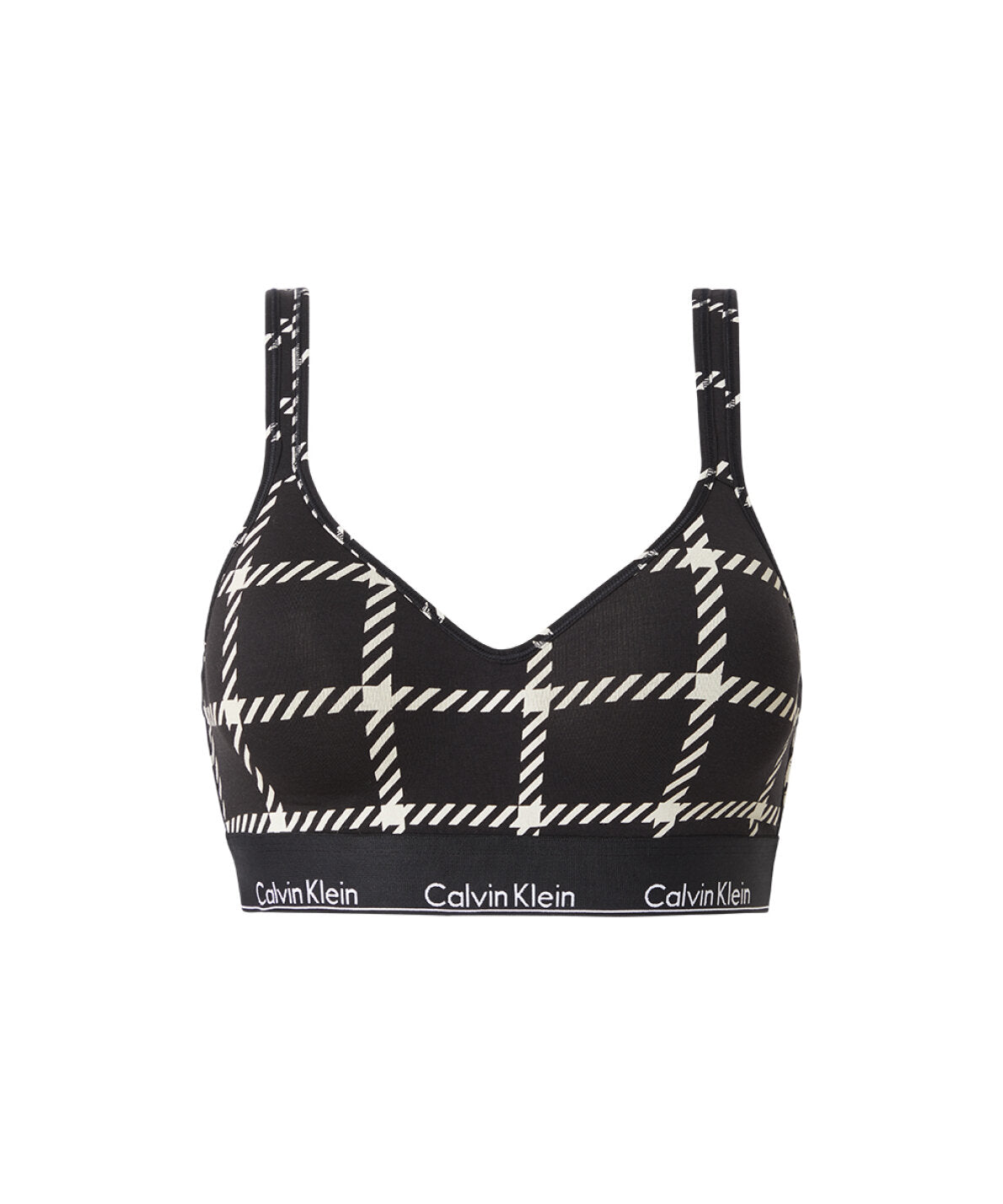 Μπουστάκι ή bralette σουτιέν Calvin Klein με ελαφριά επένδυση. Το πάνω μέρος είναι σχεδιασμένο με καρό τύπωμα. Υλικό: βαμβάκι 53%, μοντάλ 35%, ελαστάνη 12%.