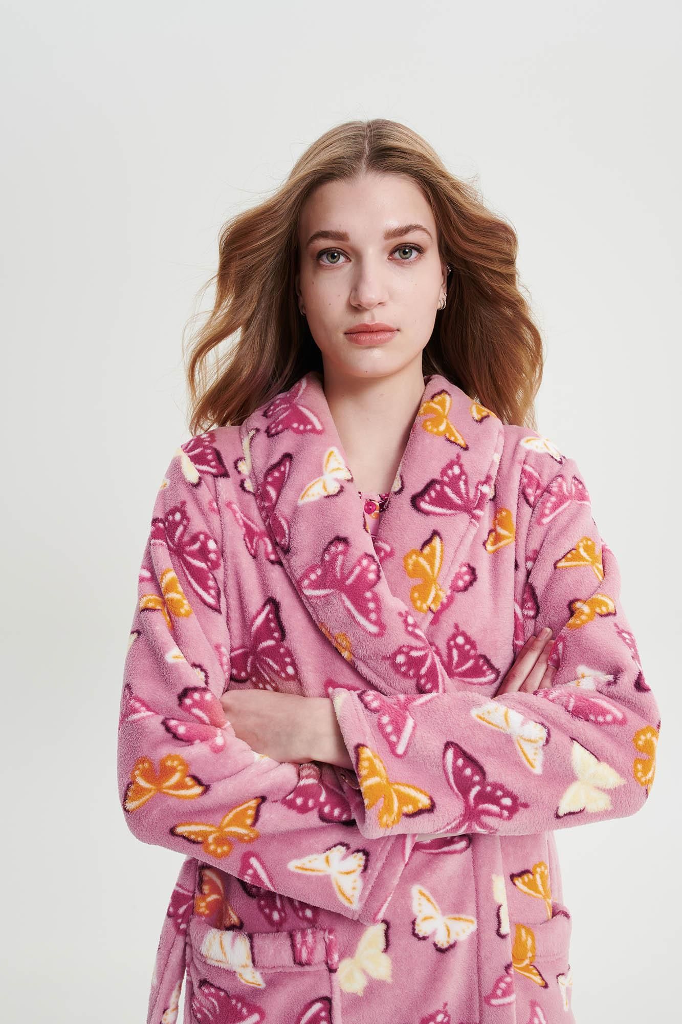 100% POLYESTER 100% Coral Fleece Polyester Μήκος: 95cm. Το μοντέλο φοράει Small και έχει ύψος 175cm. Σταυρωτή, γυναικεία ρόμπα με τσέπες, και μαλακό πέτο. Φτιαγμένη...