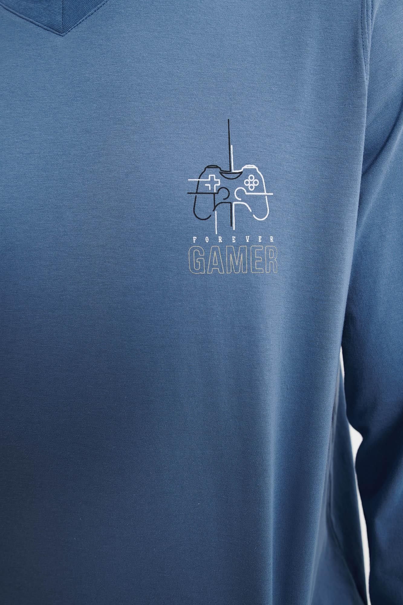 19631 689 VAMP ΠΥΤΖΑΜΑ ΑΝΔΡΙΚ. ΜΕ ΜΑΚΡΥ ΜΑΝΙΚΙ χρώμα: BLUE MOONLIGHT