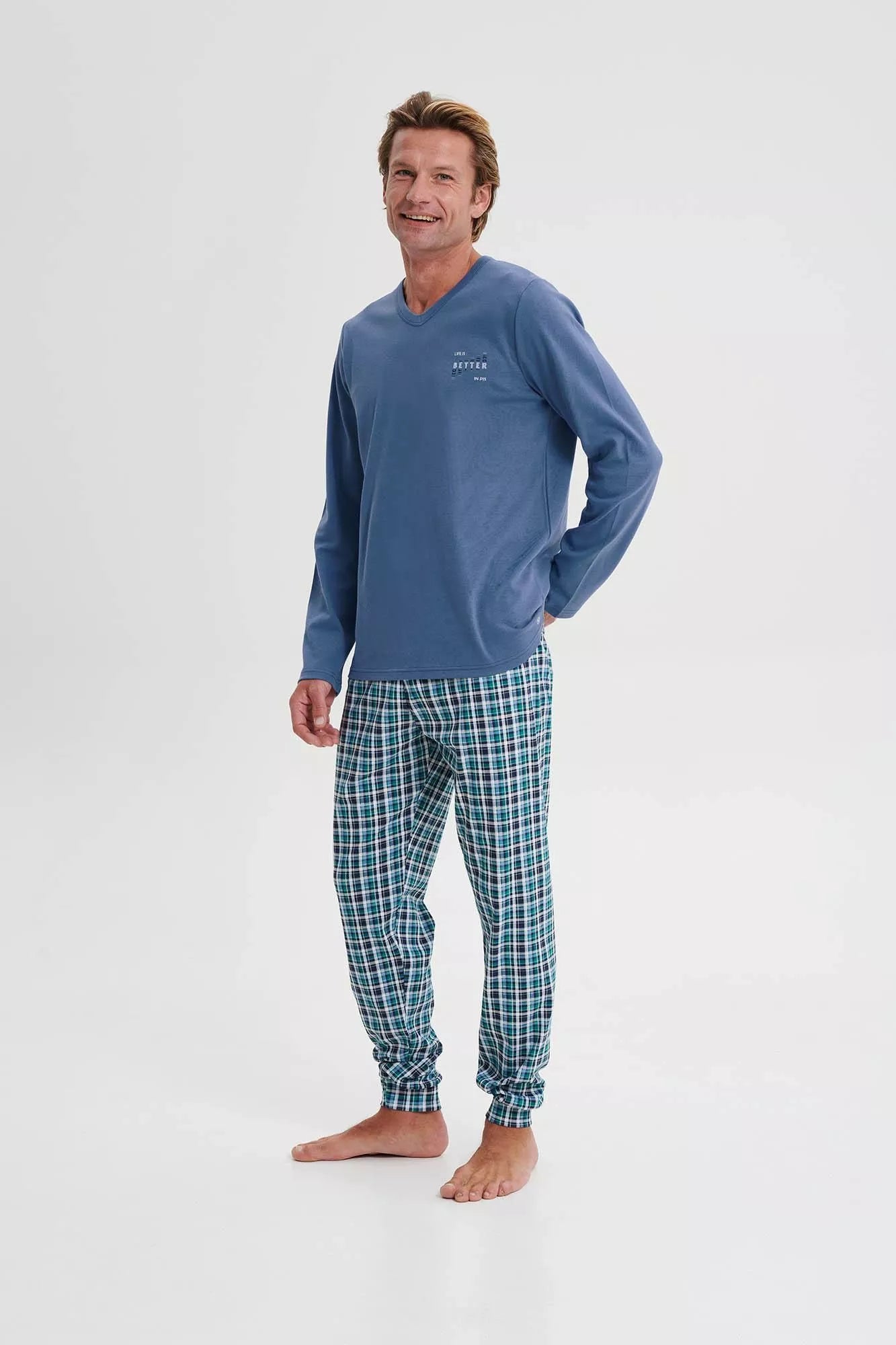 19693 689 VAMP ΠΥΤΖΑΜΑ ΑΝΔΡΙΚ. ΜΕ ΜΑΚΡΥ ΜΑΝΙΚΙ χρώμα: BLUE MOONLIGHT BLUE IRIDA