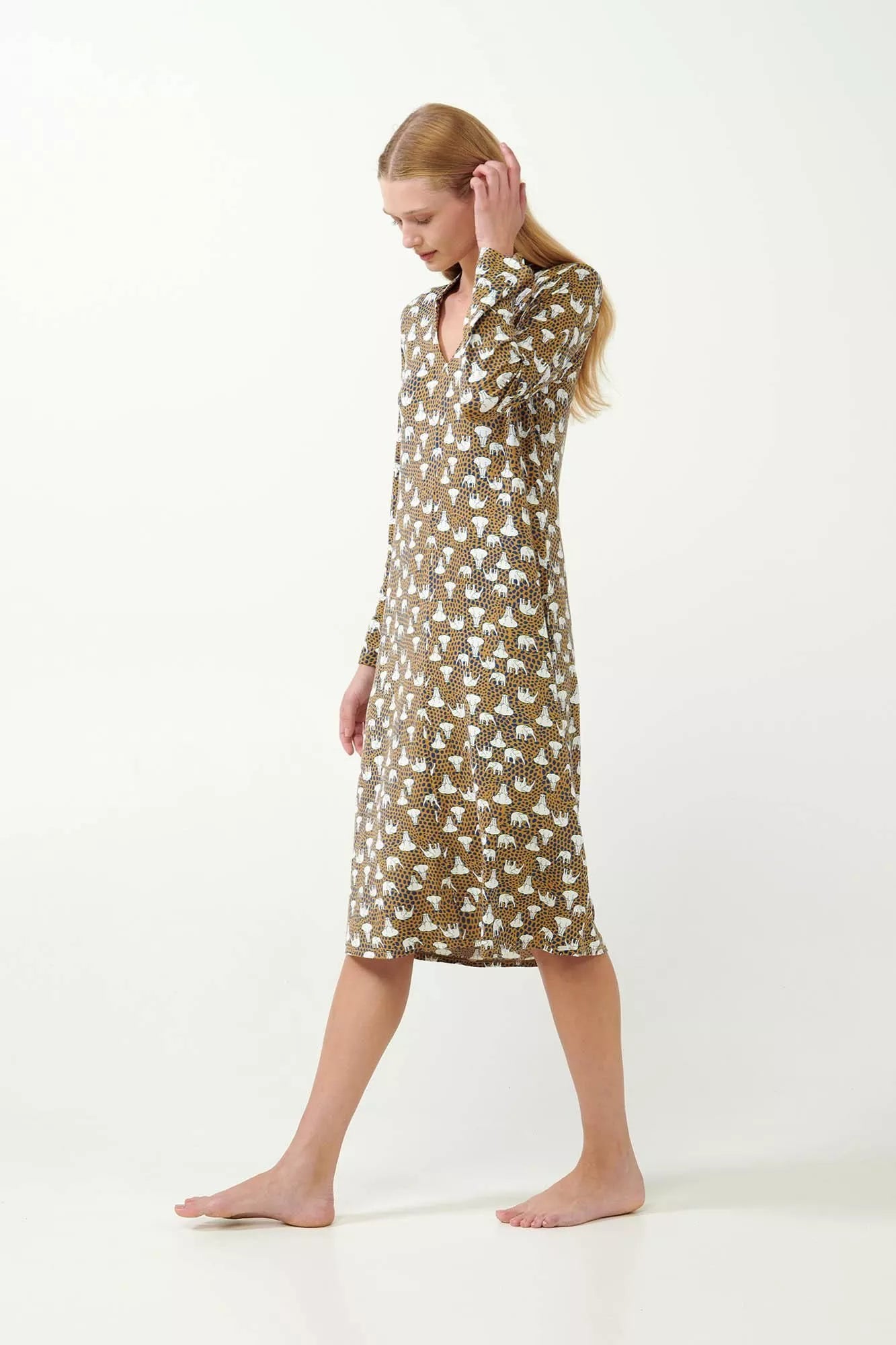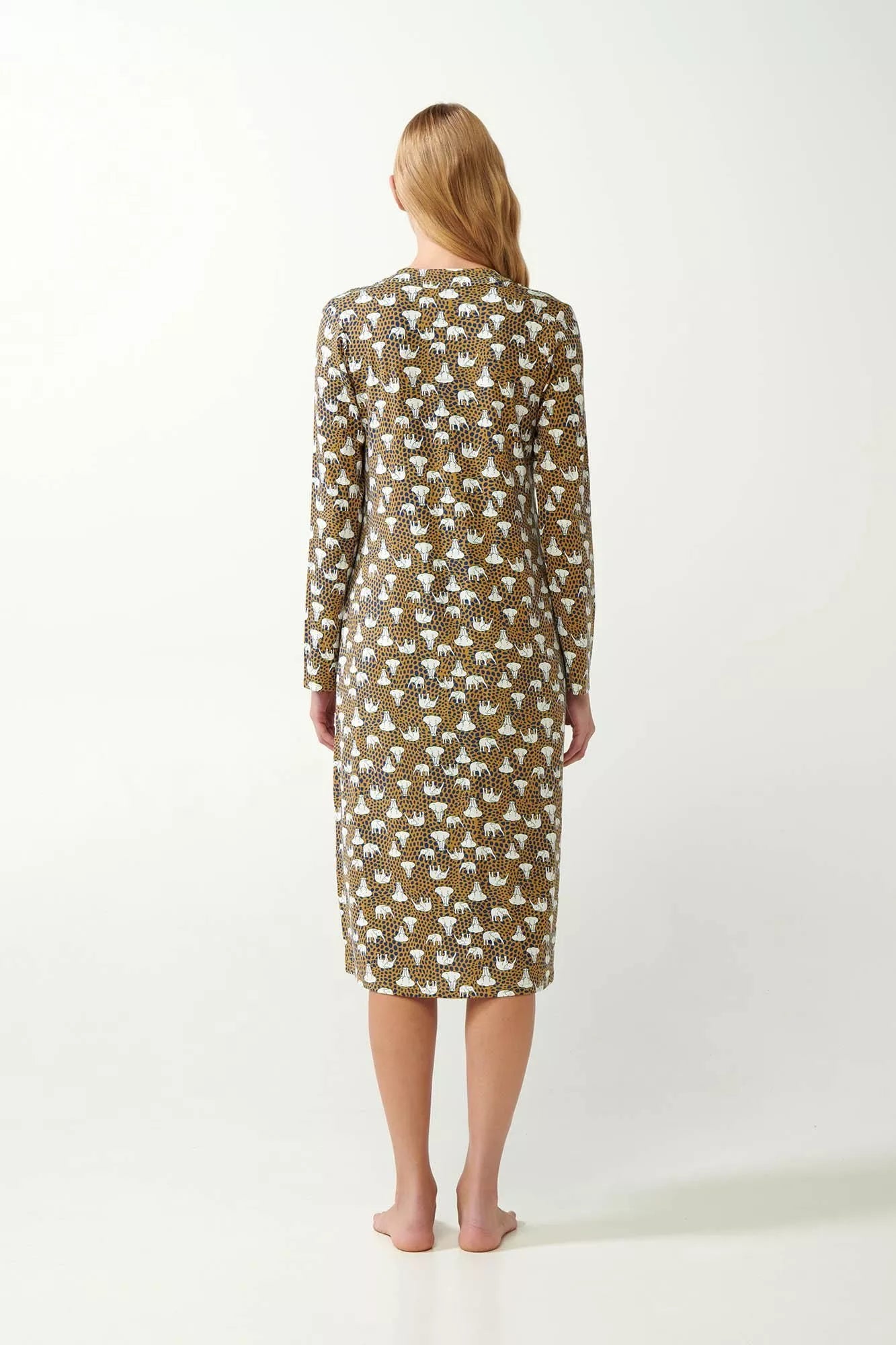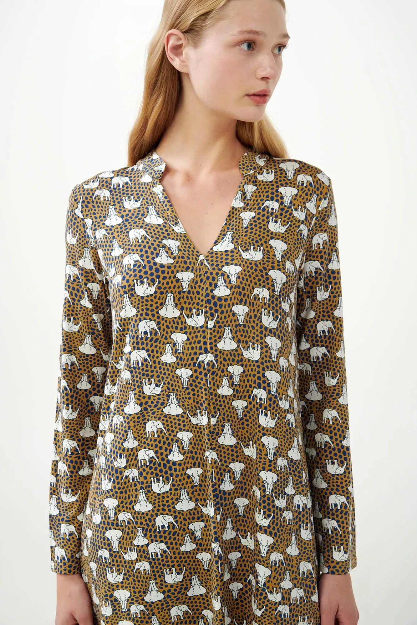 Απολαύστε την άνεση που σας προσφέρει ένα μακρύ νυχτικό σε γοητευτικό μοτίβο με ελέφαντες. Σχεδιασμένο με κολακευτική V λαιμόκοψη και χαλαρή γραμμή για βέλτιστη εφαρμογή. Κατασκευασμένο από εξαιρετικά απαλό micromodal που επιτρέπει στο δέρμα να αναπνέει και αγκαλιάζει ευχάριστα το σώμα είναι μια ιδανική επιλογή που συνδυάζει άνεση και κομψότητα κάθε στιγμή.