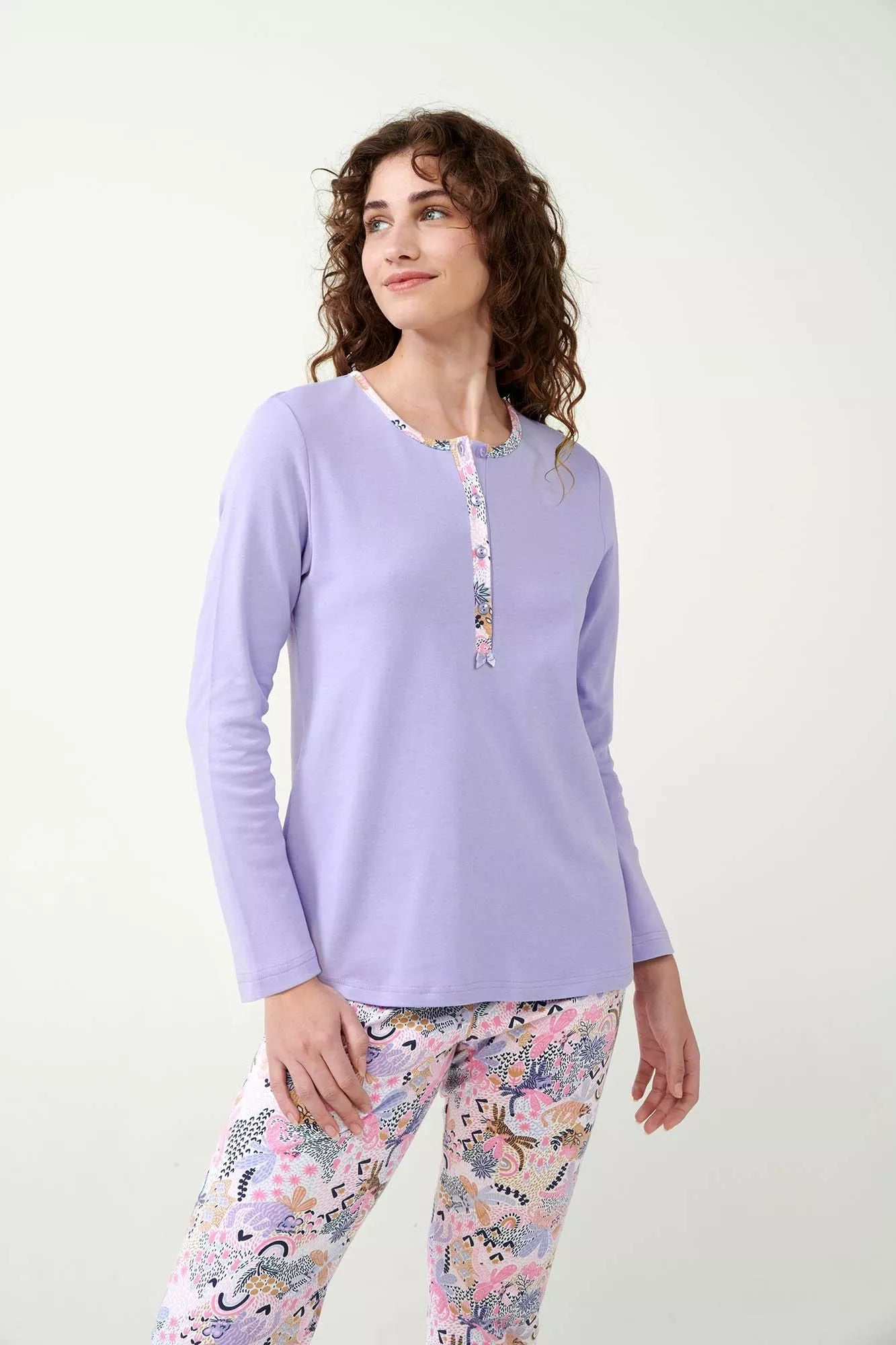 21300 825 VAMP ΓΥΝ. ΠΥΤΖΑΜΑ 100% ΒAMBAKI χρώμα: LAVENDER SWEET Πυτζάμα Interlock με Πατιλέτα