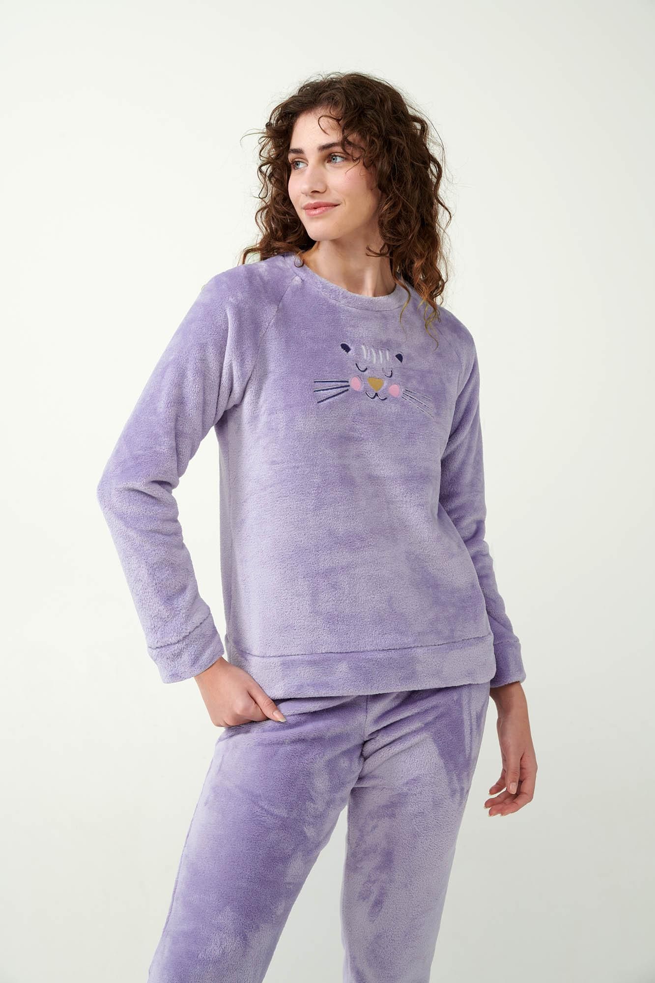 21306 825 VAMP ΓΥΝ. ΠΥΤΖΑΜΑ 100% ΠΟΛΥΕΣΤΕΡ χρώμα: LAVENDER SWEET Πυτζάμα Interlock με Fleece Μανσέτες