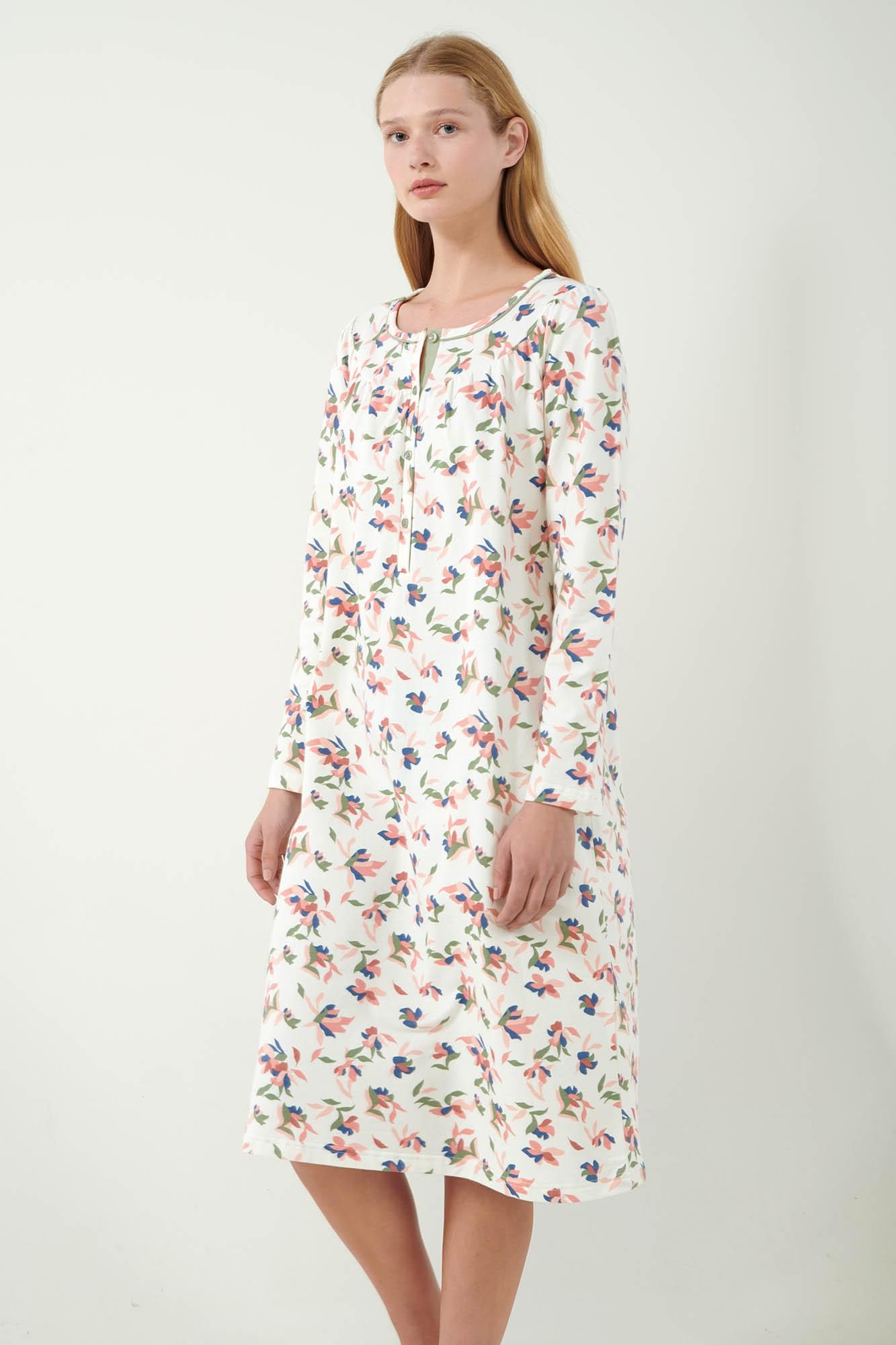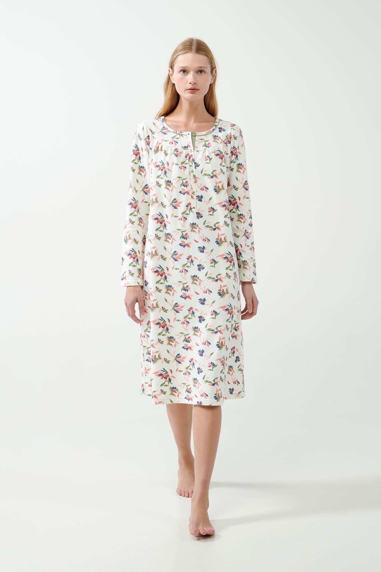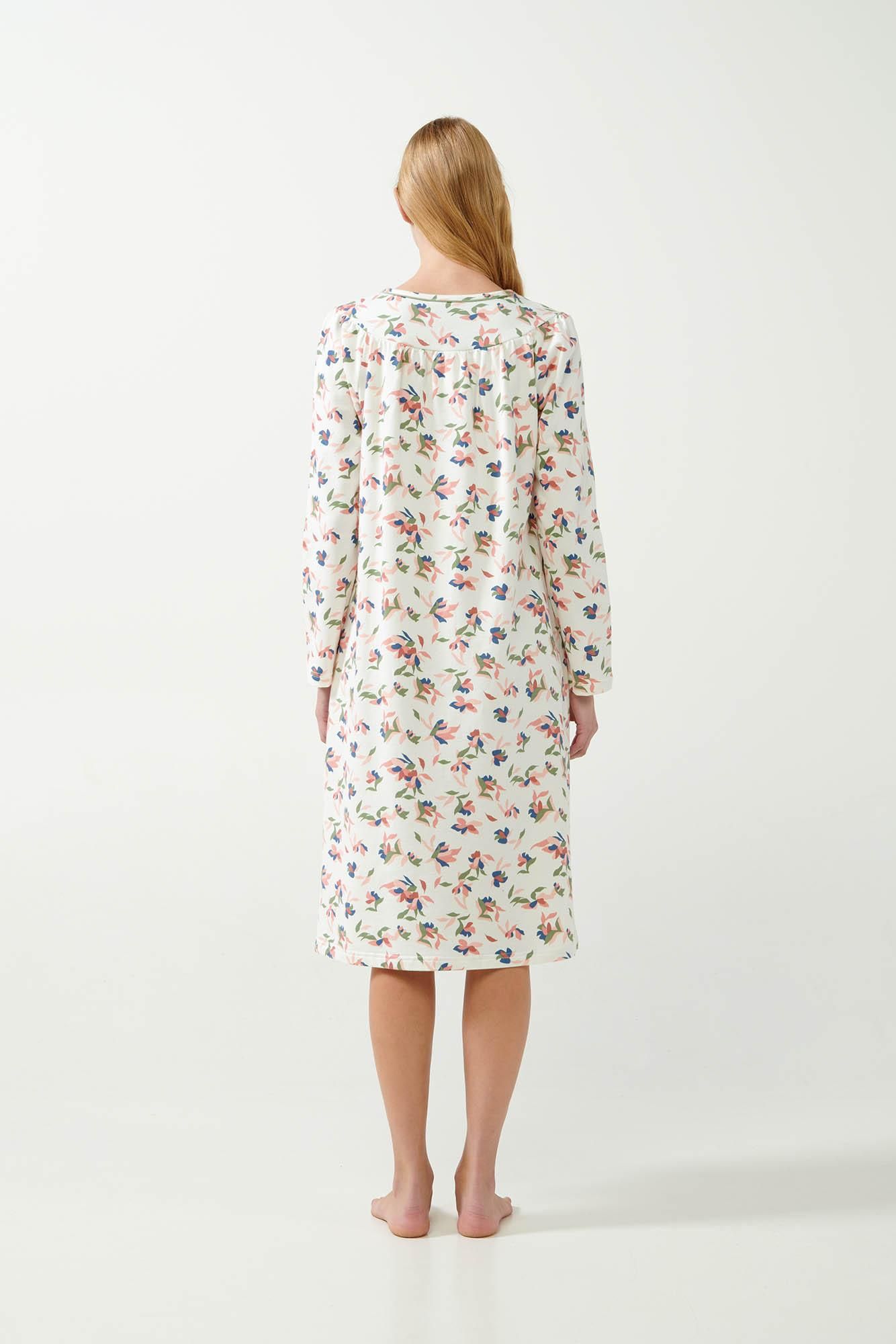 Απολαύστε την ημέρα σας επιλέγοντας ένα μακρύ νυχτικό με πατιλέτα σε γοητευτικό φλοράλ μοτίβο. Κατασκευασμένο από 100% βαμβάκι φούτερ, διαθέτει χαλαρή εφαρμογή που εξασφαλίζει την απαραίτητα άνεση και ελευθερία κινήσεων. Μια όμορφη πρόταση για χαλαρά απογεύματα και ξεκούραστο ύπνο που συνδυάζει πρακτικό σχεδιασμό και γοητευτική εμφάνιση.