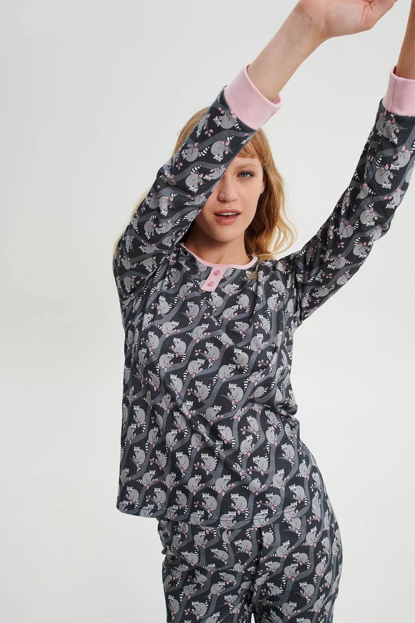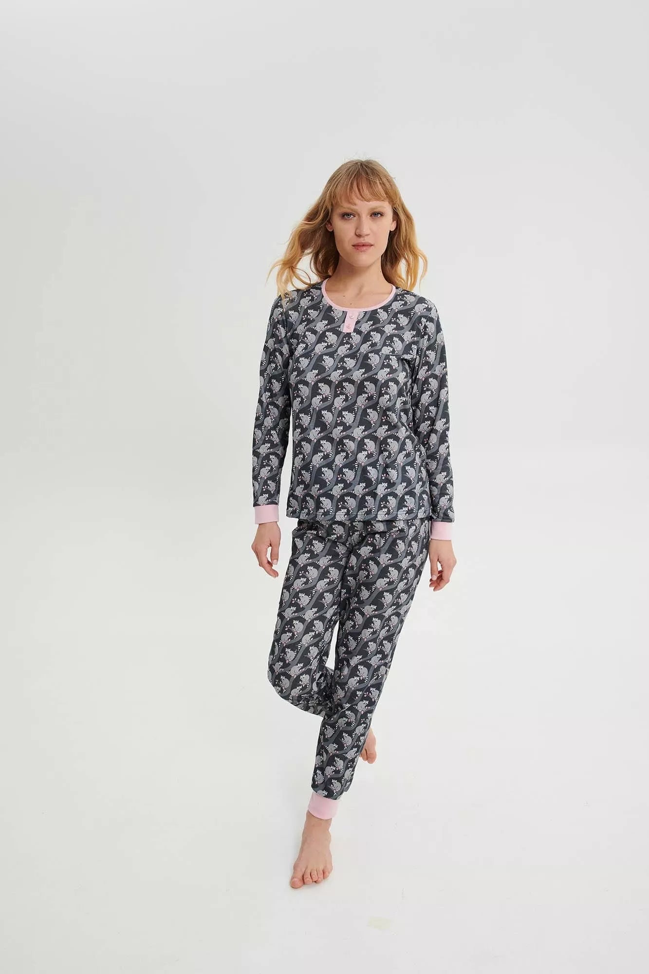 19465 702 VAMP ΓΥΝ. ΠΥΤΖΑΜΑ ΜΕ ΜΑΚΡΥ ΜΑΝΙΚΙ χρώμα: GRAY STONE