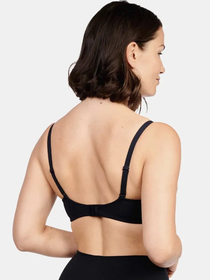 Σουτιέν χωρίς ενίσχυση, με λεπτομέρειες από δαντέλα, της εταιρείας Sans Complexe. Διαθέτει μπανέλα, πλαϊνή υποστήριξη, ρυθμιζόμενες φαρδιές ράντες και διακοσμητικό άνοιγμα ανάμεσα στα cups.