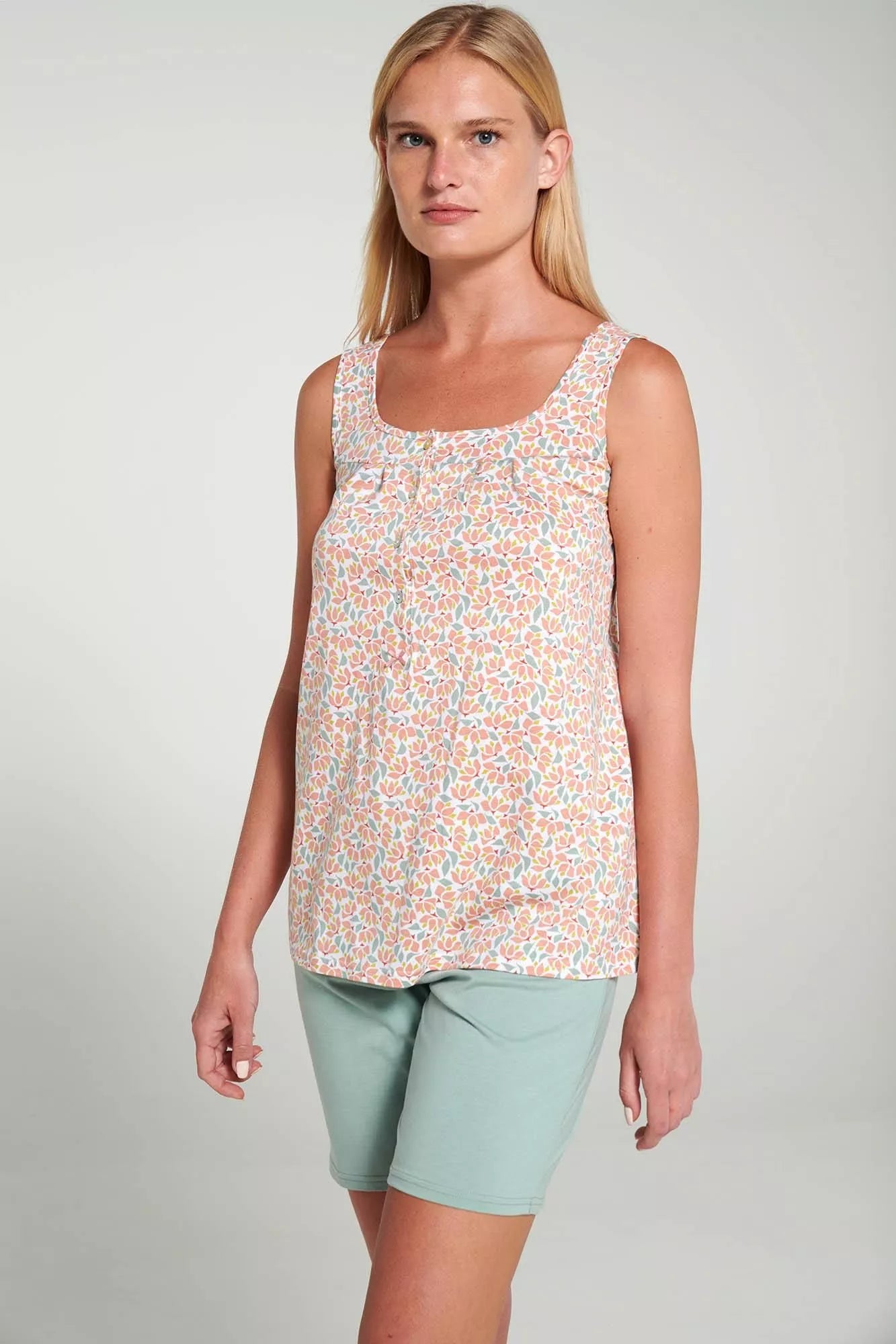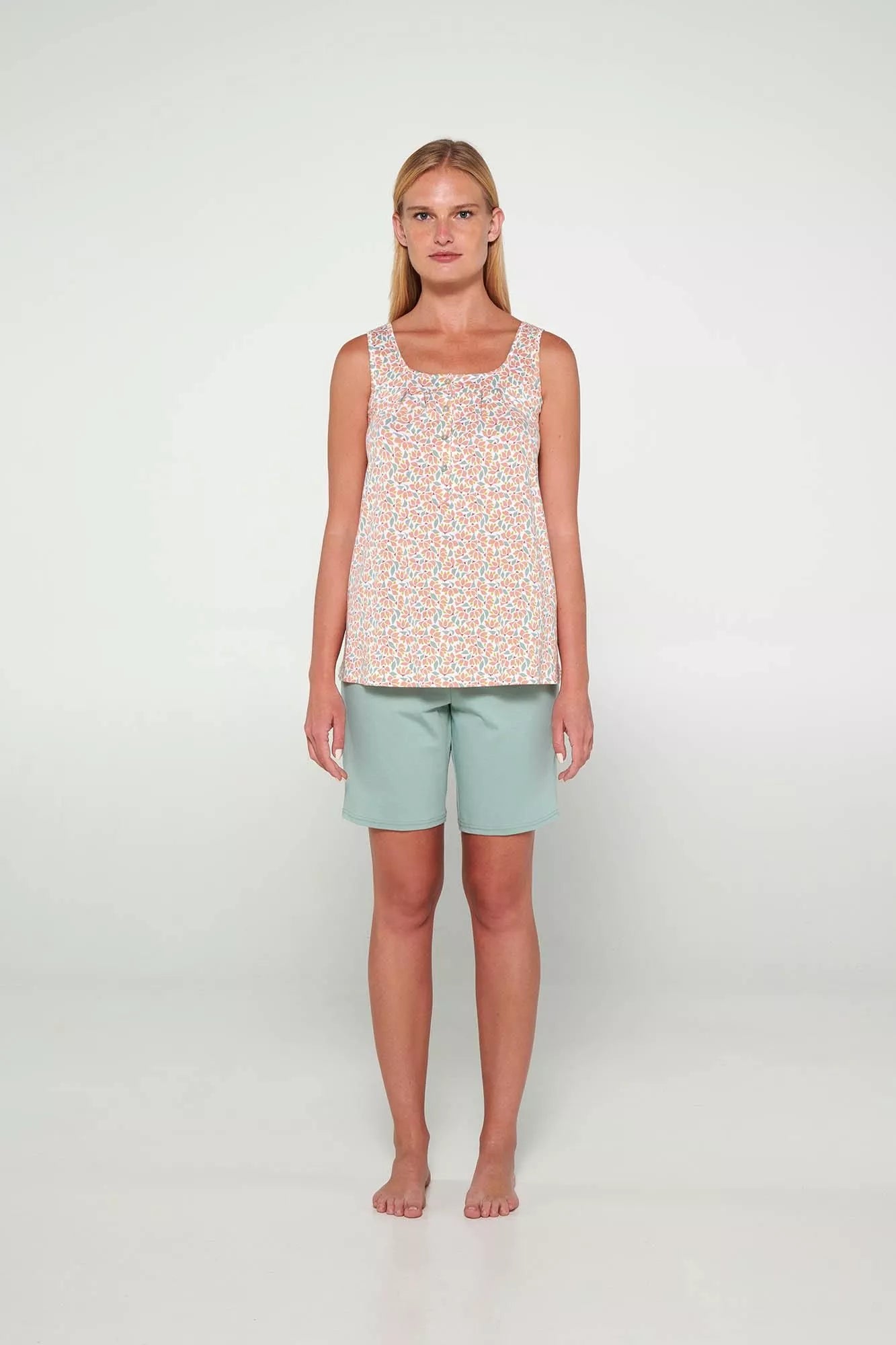 Γυναικεία πυτζάμα με πατιλέτα και μονόχρωμο, κοντό παντελόνι. Μια φλοράλ επιλογή, με απαλή σύνθεση που θα απολαύσετε όλη την ημέρα.