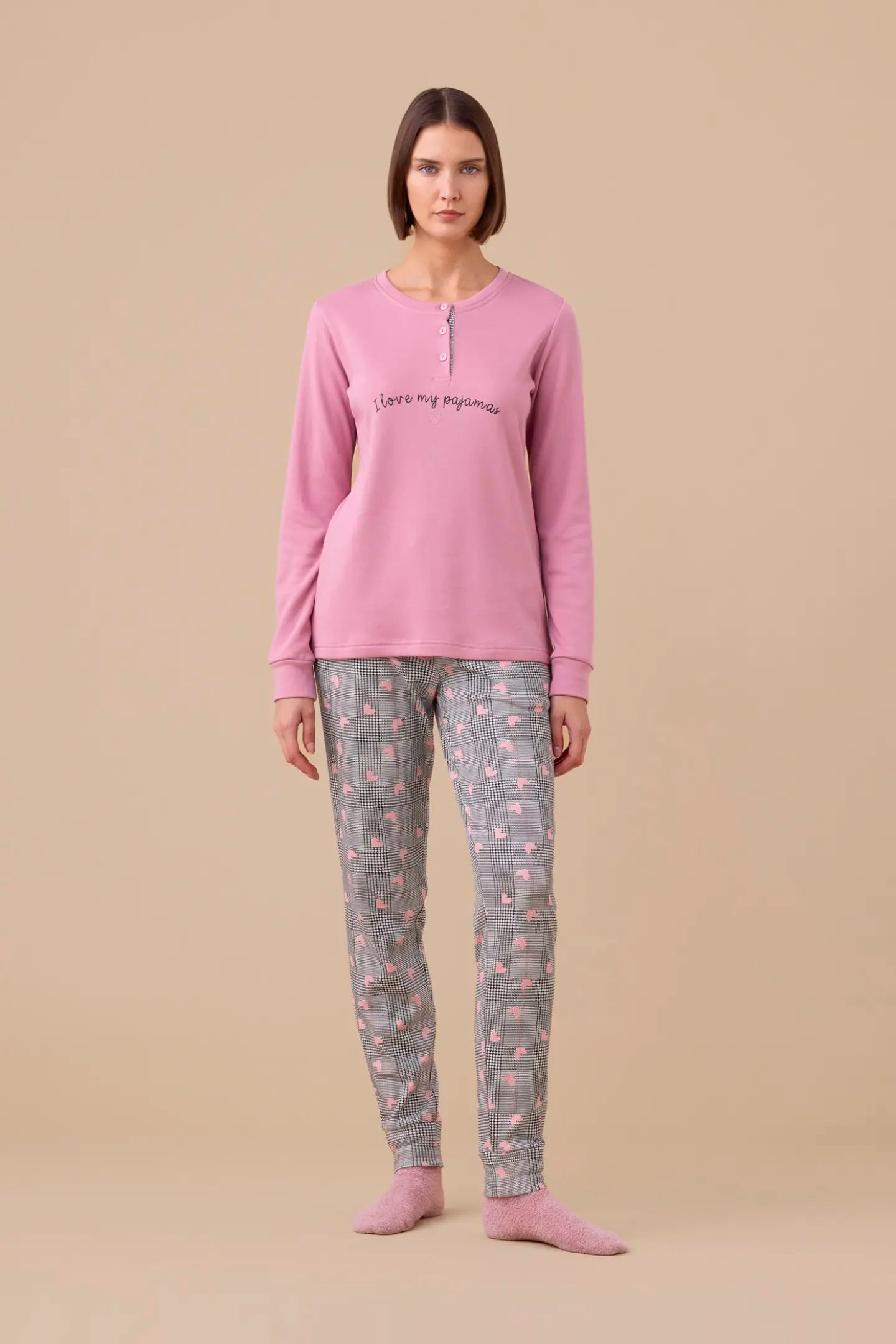 Γυναικεία ζεστή πιτζάμα από βαμβακερό fleece, σε σχήμα καρδιάς.